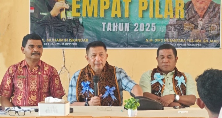 JurnalBabel.com – Anggota MPR/DPR RI Fraksi PKB, Dipo Nusantara Pua Upa, melaksanakan kegiatan Sosialisasi Empat Pilar MPR RI dengan tema “Merawat Pancasila di Tengah Perubahan Zaman dan Dinamika Media Sosial” di Aula Kelurahan Ndorurea, Kecamatan Nangapanda, Nusa Tenggara Timur (NTT), Sabtu (13/12/2025).